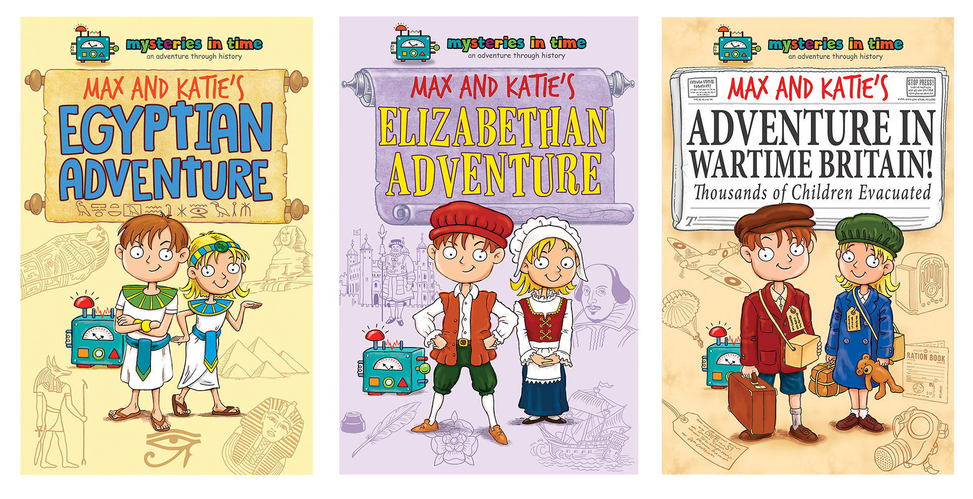 One of the most enjoyable projects I’ve worked on over the last few years is Mysteries in Time. It’s an award-winning history subscription box packed with great stuff for children aged 7-11, including a story book, puzzles, stickers and lots more. The brainchild of Samantha Metcalf, an ex-teacher, it’s all about the adventures of Max and Katie and how they go back in time to various historical periods and solve mysteries along the way.