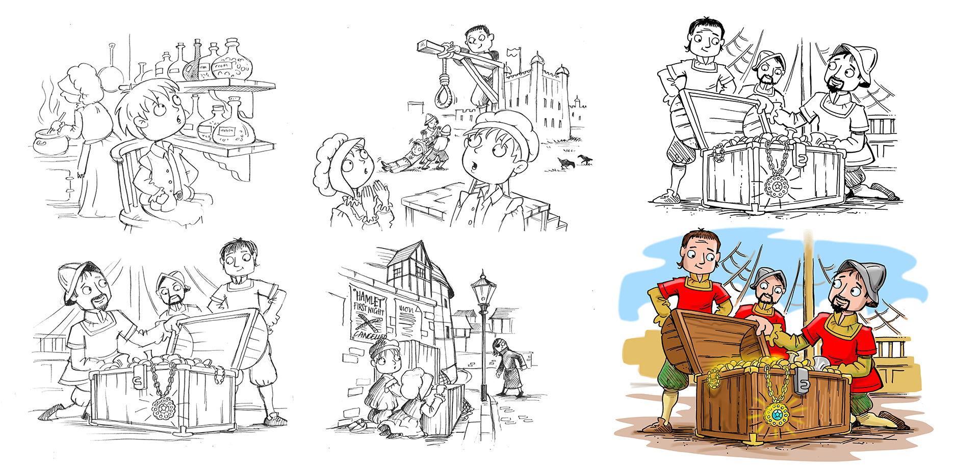 For me it was the chance to be involved with something educational and fun and was exactly the sort of thing I would have loved as a child. As an illustrator it was a chance to combine book cover design, digital illustration, character design, historical line art and hand-drawn cartoons.